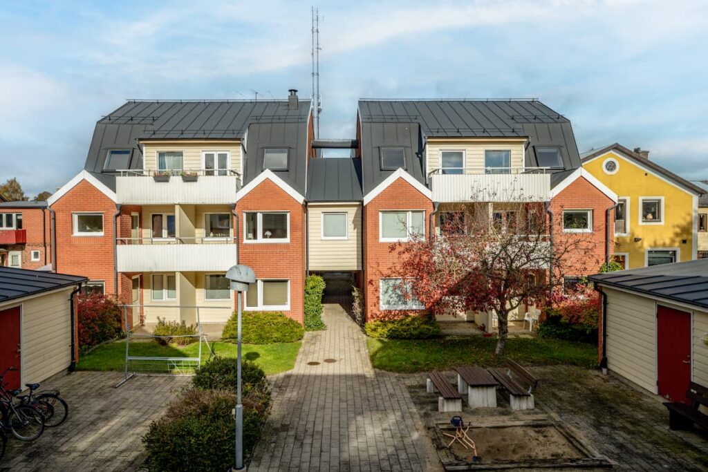 Fastighet med 18 lägenheter om 2–4 Rok på 63–93 m². Egen trädgård eller balkong. Endast 20 meter till busshållplats och cirka 300 meter till mataffär.